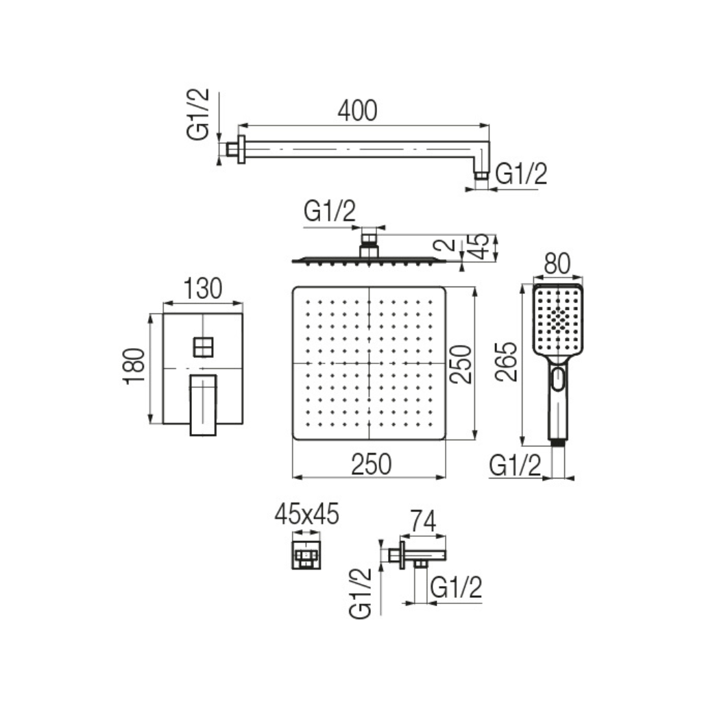 Retto shower set with soap dish