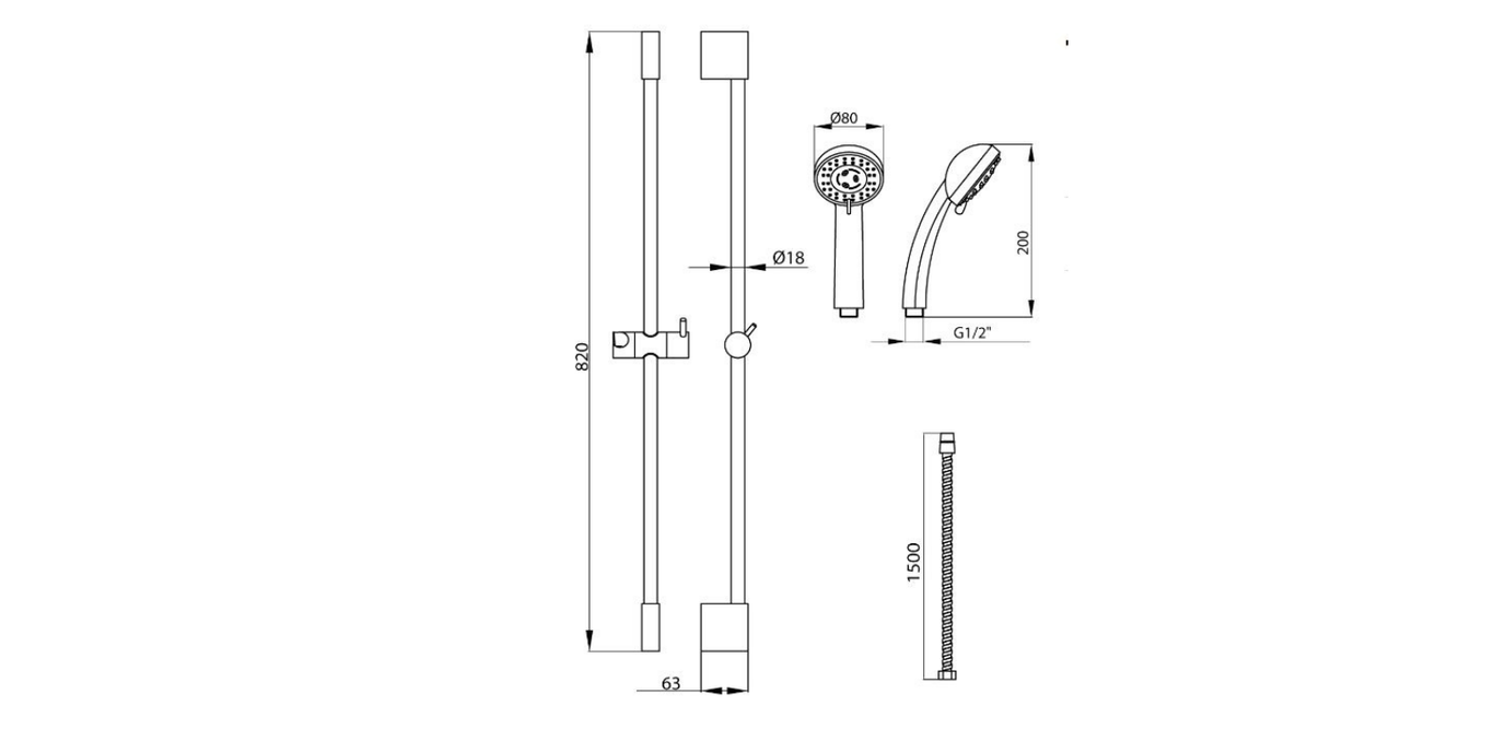 Uran 3-Function Shower Set with soap dish