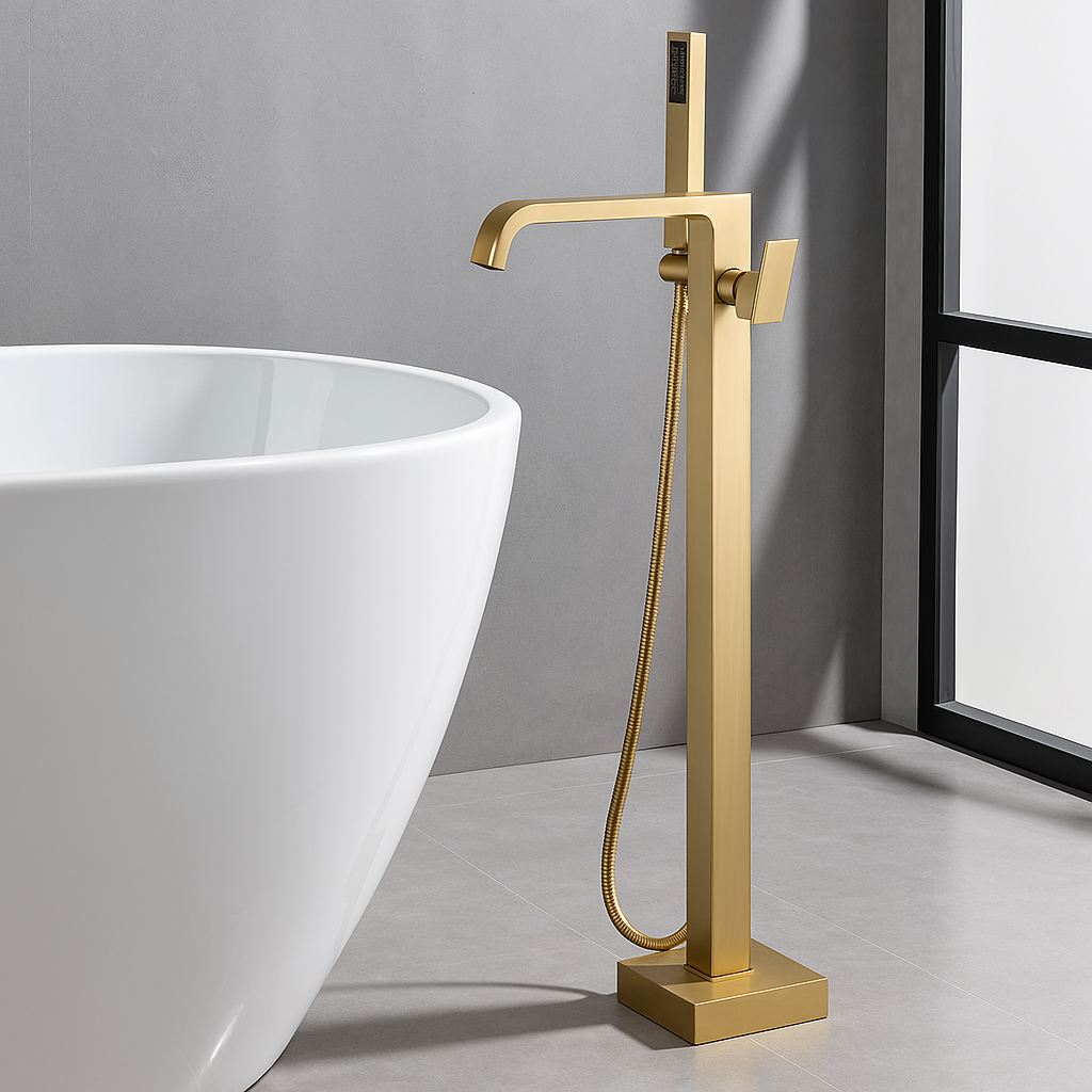 OMSA Floor Standing Bath Mixer Square Brushed Gold