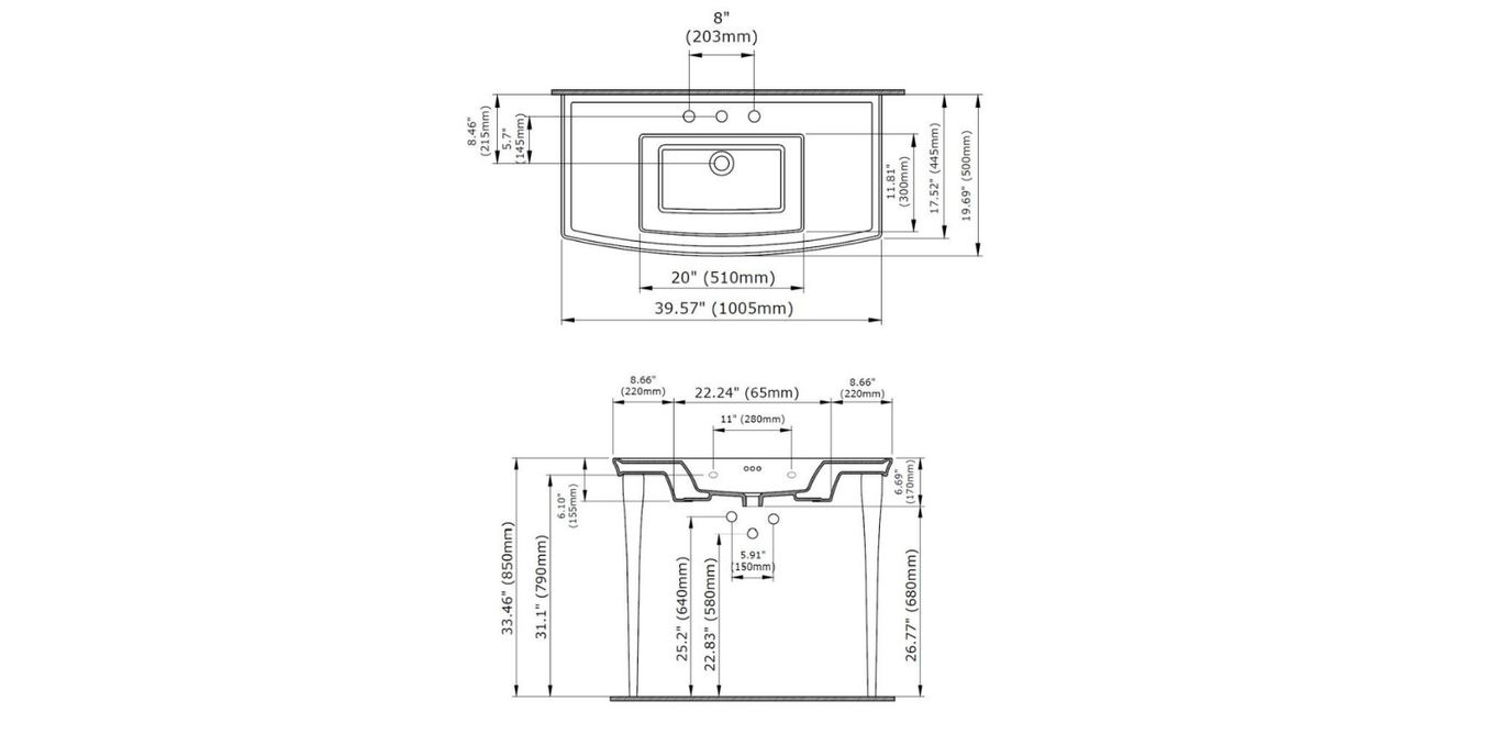 Console sink top with 3-hole By Lavita
