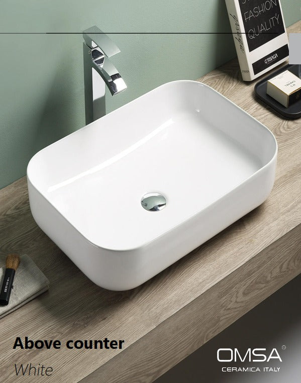 Over Counter Wash Basin Rect White 610MM