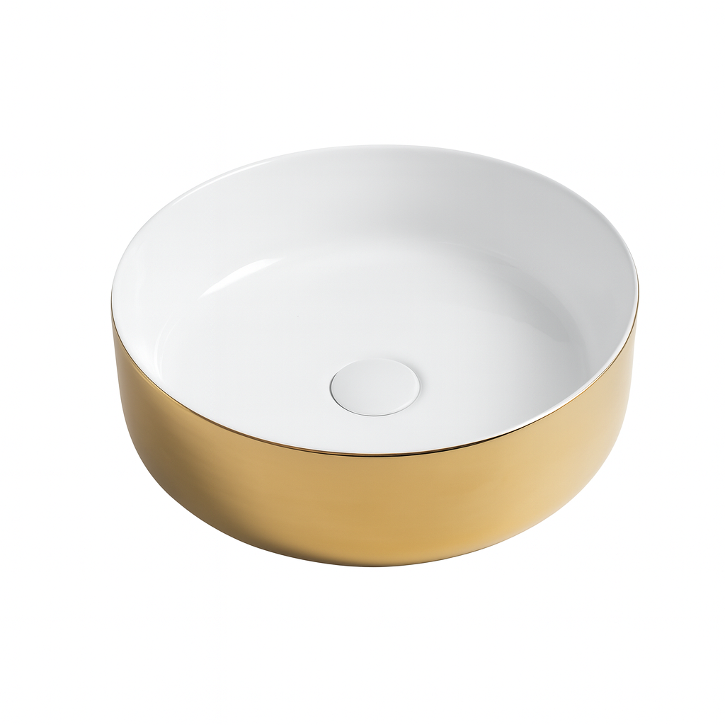 Over Counter Wash Basin Round Golod and White 360MM