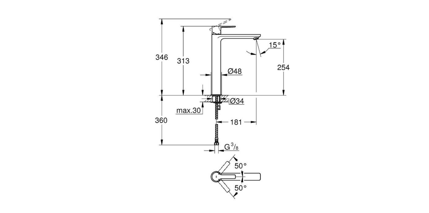 Lineare Single lever basin mixer 1/2" XL-Size