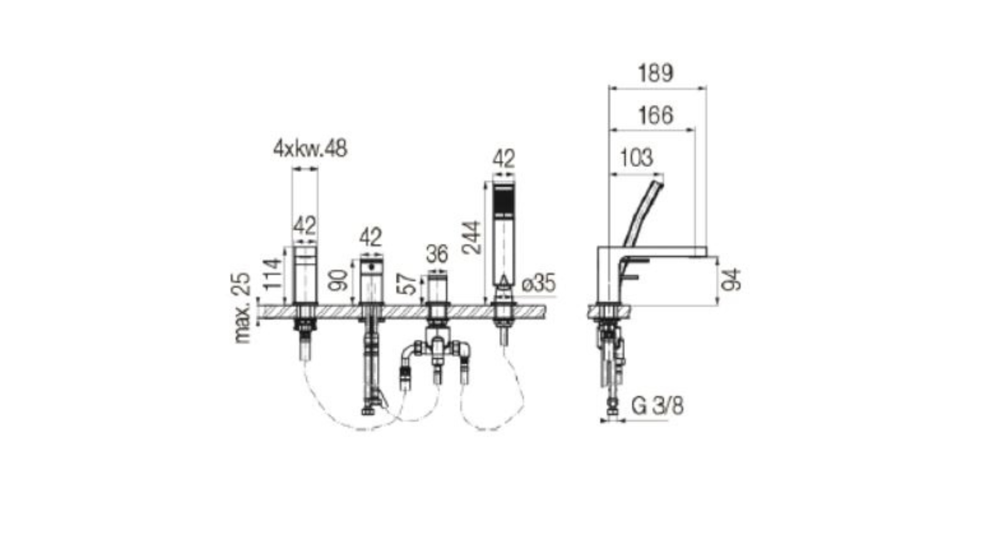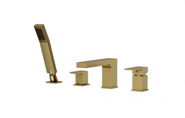 ARS Brushed Gold 4-hole standing bathtub faucet with accessories