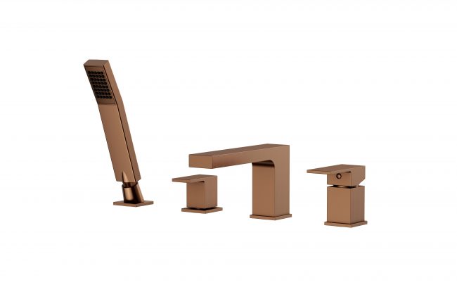 ARS Satin Copper 4-hole standing bathtub faucet with accessories